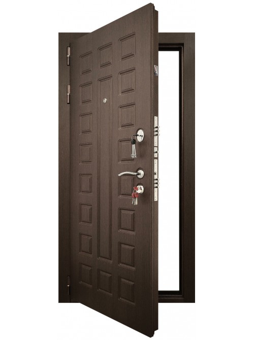Полотно: виконання для дверей в квартиру Утеплене полотно товщиною 90 мм. Зовні МДФ накладка товщиною 20мм, всередині МДФ накладка товщиною 16мм. Товщина металу полотна 2 мм.