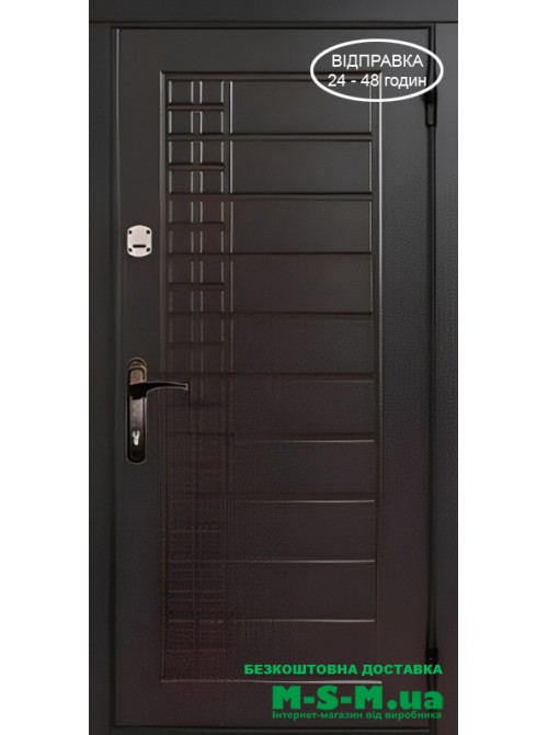 • В комплекті замок сувальдний та замок під циліндр з нажимною ручкою українського виробництва з гарантією 3 роки.