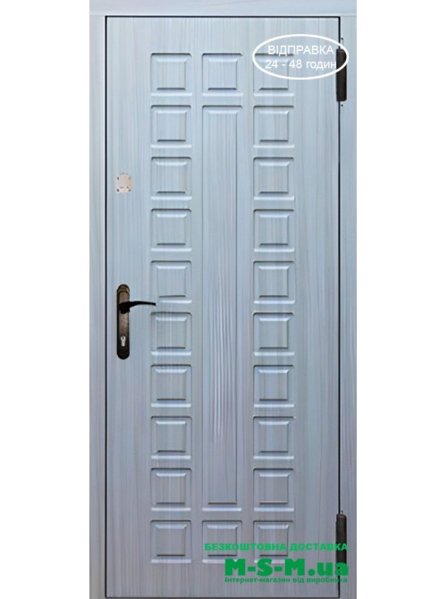 • В комплекті замок сувальдний та замок під циліндр з нажимною ручкою українського виробництва з гарантією 3 роки.