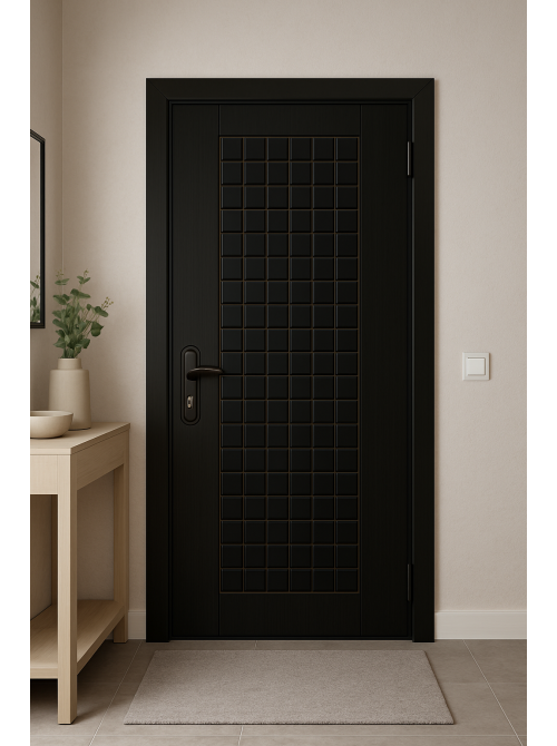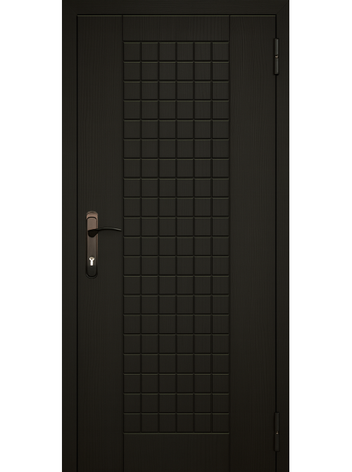 Темний колір пасує до будь-якого фасаду або під'їзду, не маркий і завжди актуальний. А ще — металеве полотно + утеплення + оздоблення МДФ = комфорт, надійність, довговічність.