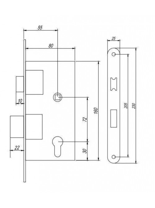 CLASS Замок врізний ЗВ-7-72/55 SN