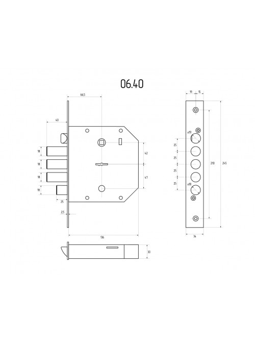 Замок врізний CLASS 06.40 сувальдний (лівий) (латунний ключ,без тяг)