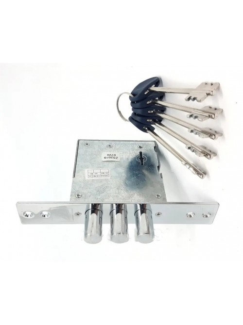 Додатковий замок призначений для встановлення у вхідні двері. Простий механізм дозволяє врізати замок як у ліві так і в праві двері. Замикання здійснюється поворотом сувальдного ключа, три ригель фіксуються у відкритому положенні на 26 мм і надійно зачиняють двері.