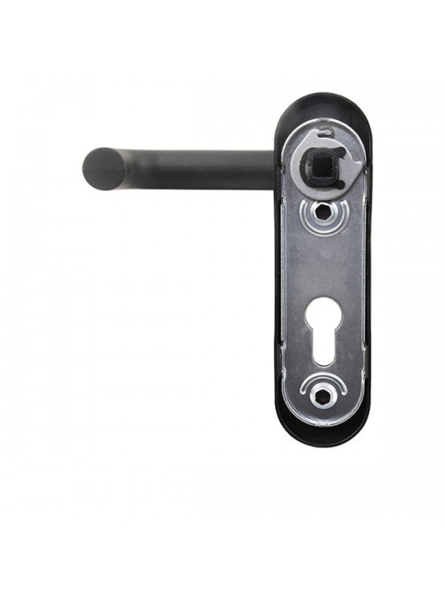 Ручка встановлюється на глухі стяжні гвинти, демонтаж із зовнішнього боку дверей неможливий.