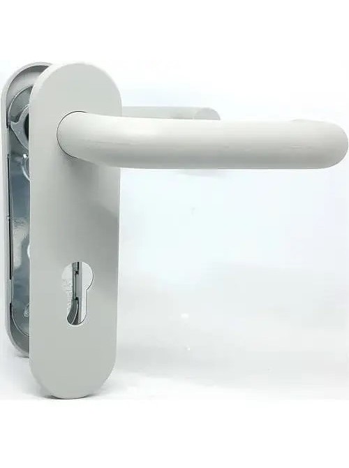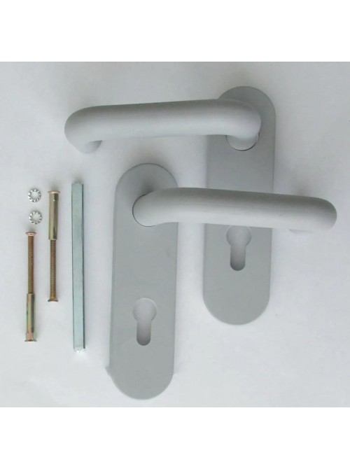 Дверні ручки на планці з пружиною призначені для установки на протипожежні двері. Підходять для комплектації протипожежних замків. Рекомендується використовувати в комплекті з протипожежними замками. Міцна поворотна пружина перешкоджає провисання ручки, полегшує роботу приводу замку.