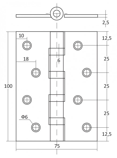 Петля дверна універсальна KEDR 100*75*2.5-B4-G