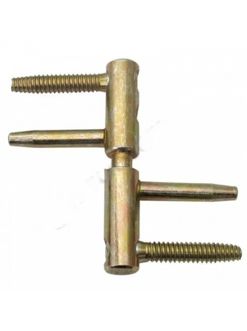 Завіс торгової марки KEDR. Ця модель призначена для дверного полотна, яке має не прямий торець дверей, а виступ приблизно 1/3 від конструкції. Такі завіси складаються з двох частин, і кожна частина має по два стержні. Один стержень призначений для центрування, а інший для регулювання полотна по горизонталі. Тому у випадку просідання дверного полотна його можна буде відрегулювати. Під час вибору важливо врахувати вагу та габарити Ваших дверей, щоб визначитись із кількістю потрібних петель. Покриття наноситься методом гальваніки, що гарантує стійкість кольорового відтінку до стирання та подряпин. Завіси монтуються з використанням спеціального шаблону за рахунок закручування стержнів у дверну раму. Завіс даного виду підходить під двері із французською чвертю (полотно має фальц).