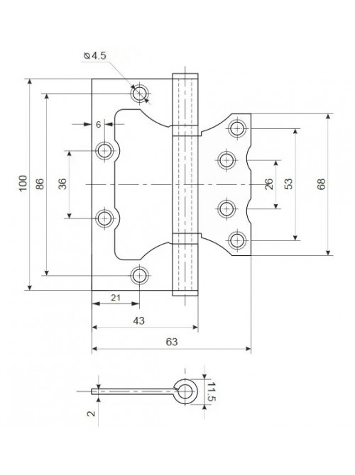 Завіса метелик Kedr Fluch 100x63x2.0mm-2BB-PB (золото)