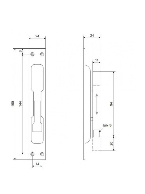Торцевий шпінгалет для металевих дверей KEDR СХ-001