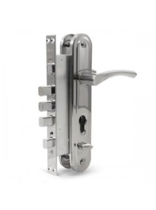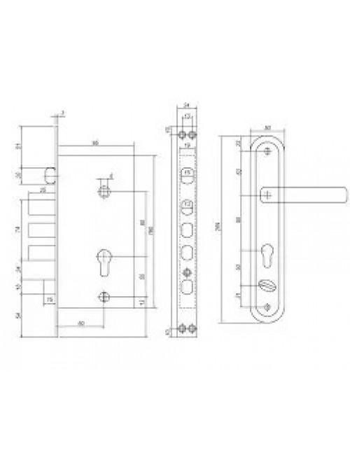Цей комплект замку призначений для встановлення в металеві вхідні двері. Корпус можна встановити лише на правосторонні двері. Комплект ручок зібраний таким чином, що зсередини приміщення можна закривати додатковим поворотником (нічна засувка). У комплектацію замку входить ручка та корпус замку.
