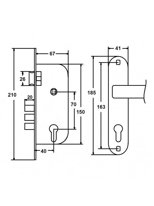 Даний врізний дверний замок поставляється в комплекті з ручкою і циліндром. Призначений для встановлення в міжкімнатні двері або будь-які інші двері, що знаходяться в громадських приміщеннях або будинках (металеві двері). Призначений для установки на дерев'яні міжкімнатні двері товщиною не більше 40 мм