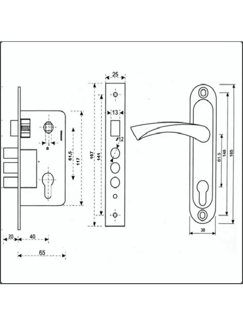Відстань між кріпленням на лицьовій планці – 147 мм.