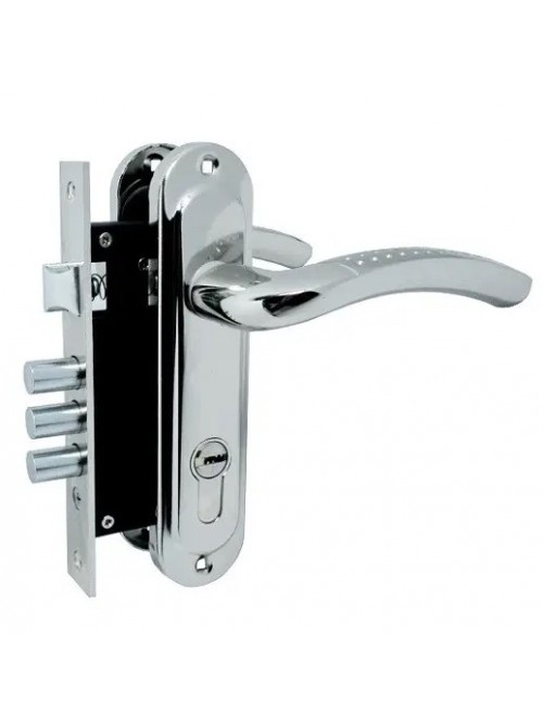 Даний врізний дверний замок поставляється в комплекті з ручкою і циліндром. Призначений для встановлення в міжкімнатні двері або будь-які інші двері, що знаходяться в громадських приміщеннях або будинках (металеві двері). Замок універсальний ( підходить як для правого та і для лівого відкривання)