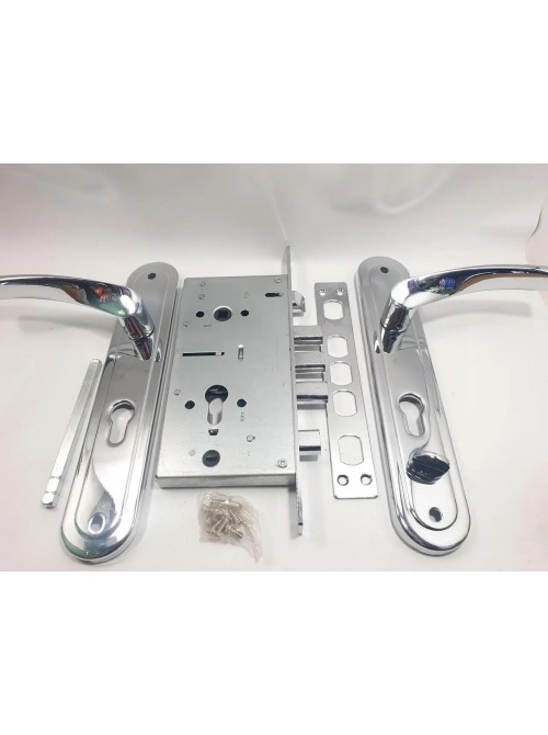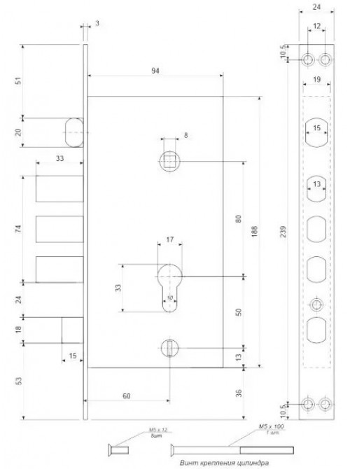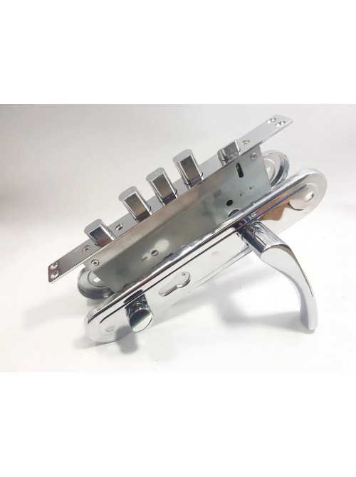 Замок врізний є аналогом замка апекс Т5Д тільки набагато дешевший. За своїми характеристиками та якістю нічим не поступається апексу. Замки є праві та ліві. У комплекті йдуть стяжки d-6мм . Відповідна планка . Замок має додаткове замикання зсередини. Замок йде без циліндрового механізму. Розміри: