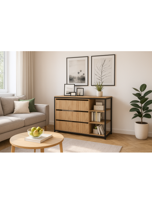 Комод Амелія 27 MSM Loft — це сучасний варіант класичного комода, створений для тих, хто цінує порядок, стиль та якісні матеріали. Стриманий лофт-дизайн, акуратні лінії та продумана конструкція роблять його доречним у спальні, вітальні, передпокої чи домашньому кабінеті. Комод однаково добре виглядає як окремий акцент, так і в комплекті з іншими лофт-меблями MSM Loft. Місткі шухляди дозволяють комфортно організувати зберігання одягу, білизни, текстилю, документів чи різних дрібниць, які зазвичай створюють безлад у кімнаті. Верхня поверхня комода ідеально підходить для декору: дзеркала, лампи, сімейних фото, свічок або квітів. Завдяки збалансованим пропорціям та лаконічному фасаду комод не перевантажує простір і гармонійно виглядає як у невеликих кімнатах, так і в просторих інтер’єрах. Поєднання корпусу та фасадів під дерево з сучасною геометрією створює універсальний вигляд, який легко вписується у популярні стилі: лофт, модерн, скандинавський, мінімалізм. Комод Амелія 27 добре комбінується з ліжками, тумбами, стелажами та столами MSM Loft, дозволяючи збирати цілісний комплект меблів у єдиному стилі.Виробник MSM Loft (МСМ) має власне виробництво меблів та металевих виробів, що дозволяє контролювати якість на кожному етапі. Ви отримуєте комод із надійною фурнітурою, акуратною збіркою та продуманою ергономікою, розрахований на щоденне використання вдома або в офісі. Комод Амелія 27 MSM Loft стане практичним центром системи зберігання у вашому домі: він допоможе навести лад у речах, додати інтер’єру завершеності та підкреслити сучасний характер простору. Замовляйте онлайн на M-S-M.ua з доставкою по всій Україні.