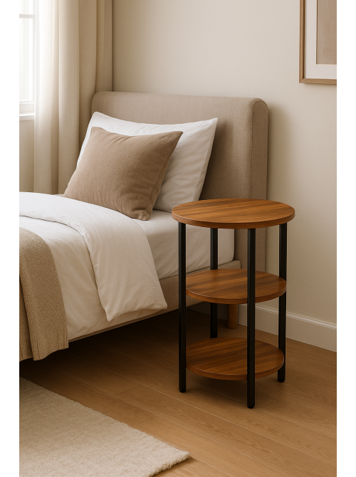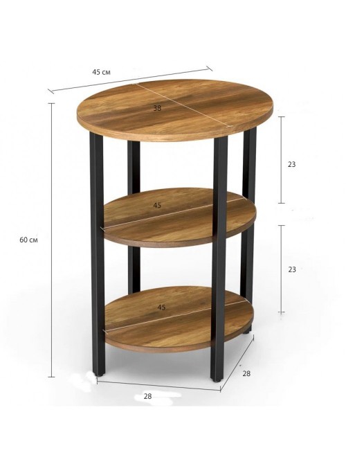 Круглий столик Jakwan – це універсальний лофт-столик, який додає інтер’єру легкості та порядку. Завдяки трьом ярусним полицям ви отримуєте достатньо місця для зберігання: на верхній можна поставити лампу, квіти чи напої, а нижні полиці зручно використовувати для книг, кошиків з дрібницями або декоративних аксесуарів. Такий формат ідеально підходить для вітальні, спальні, домашнього кабінету або невеликого коридору. Габарити столика продумані для сучасних квартир: висота 60 см, ширина 45 см, глибина 28 см – він не займає багато місця, але додає функціонального простору. Стільниця та полиці виконані з ДСП товщиною 16–18 мм, а каркас із металевої профільної труби 20×20 мм забезпечує надійну опору та стійкість. Столик доступний у світлому або темному кольорі, тому легко поєднується з іншими меблями у стилі лофт, сканди чи мінімалізм. Обираючи круглий столик Jakwan від виробника МСМ / MSM Loft, ви отримуєте якісний український продукт із продуманим дизайном і зручною організацією зберігання. Замовляйте столик з доставкою по всій Україні та створюйте комфортний, стильний простір у своєму домі.