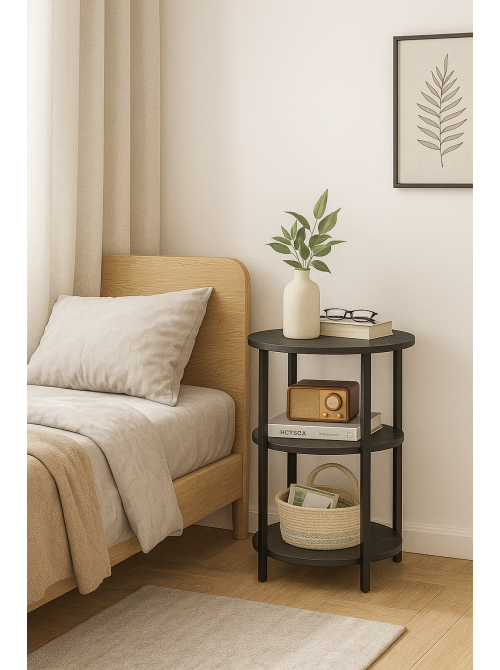 Круглий столик Mauch – це стильний журнальний столик у лофт-стилі, який поєднує компактні розміри та максимальну функціональність. Три круглі полиці створюють багато місця для зберігання: на верхній можна поставити каву, ноутбук або декор, а нижні яруси ідеально підходять для книг, журналів, кімнатних рослин чи пледів. Так ви тримаєте всі необхідні речі під рукою, не захаращуючи простір вітальні чи спальні. Стіл має висоту 60 см та діаметр 40 см – зручний формат для використання біля дивану, крісла або ліжка. Стільниця та полиці виконані з якісного ДСП товщиною 16–18 мм, а міцний металевий каркас із профільної труби 20×20 мм забезпечує надійність і стійкість конструкції. Столик доступний у світлому або темному декорі, тому його легко вписати як у мінімалістичний, так і в більш атмосферний інтер’єр. Круглий столик Mauch від МСМ Loft стане універсальним акцентом у вашій оселі: як кавовий столик у вітальні, тумба біля ліжка чи компактна підставка для рослин. Замовляйте лофт-меблі від виробника МСМ з доставкою по всій Україні та створюйте продуманий, сучасний простір.