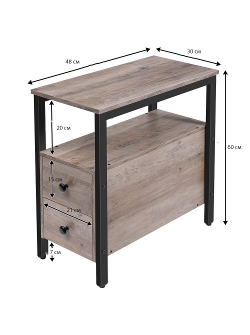 Стіл MSMLOFT 60×30×48 см з двома шухлядами та відкритою полицею — це компактне й максимально функціональне рішення для сучасної квартири чи офісу. Завдяки продуманим розмірам його зручно використовувати як приліжкову тумбу у спальні, приставний столик біля дивана у вітальні або органайзер у робочому кабінеті. Міцний металевий каркас з профільної труби 20×40 мм забезпечує стабільність і довговічність, а стільниця та фасади з ДСП товщиною 16 мм легко витримують щоденне навантаження та прості в догляді. Конструкція поєднує дві глибокі шухляди для прихованого зберігання дрібниць і відкриту полицю, куди зручно складати книги, журнали, коробки або декоративні аксесуари. Завдяки універсальній палітрі декорів — чорний, білий, дуб сонома, дуб родос, горіх — стіл легко вписується в інтер’єри у стилі лофт, модерн, скандинавський чи мінімалізм. Лаконічні прямі лінії, контраст металу й дерева та акуратна фурнітура роблять модель стильним акцентом простору. Стіл з шухлядою та відкритою полицею від виробника MSM — це поєднання практичності, якісних матеріалів та сучасного дизайну. Замовляйте лофт-стіл на M-S-M.ua з вигідною ціною та доставкою по всій Україні.
