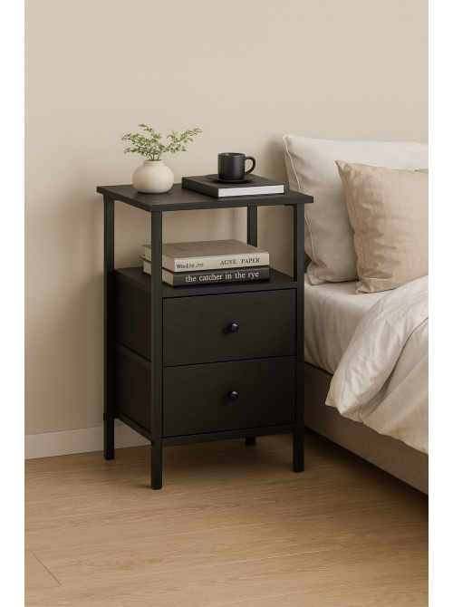 Столик із 2 шухлядами та полицями MSMLOFT — це компактний та функціональний меблевий елемент для сучасного інтер’єру. Завдяки розмірам 61×38×28 см його легко розмістити біля дивана, у передпокої або використовувати як приліжкову тумбу біля ліжка, не перевантажуючи простір. Надійна основа з металевого каркаса з профільної труби 20×20 мм забезпечує стійкість столика й довговічність конструкції. Корпус, полиці та фасади виготовлені з якісного ДСП товщиною 16 мм у популярних декорах: чорний, білий, дуб Сонома, дуб Родос, горіх — ви можете підібрати варіант під двері, ліжко чи інші лофт-меблі MSM. Дві висувні шухляди і дві відкриті полиці створюють зручний простір для зберігання: документи, аксесуари, косметика, текстиль або дрібна техніка завжди будуть під рукою, але не на видноті. Столик поєднує практичність, стиль і компактність, тому підходить для квартир, будинків та апартаментів подобової оренди, де важливо раціонально використовувати кожен метр. Замовляйте столик із 2 шухлядами та полицями MSMLOFT з доставкою по всій Україні й доповніть свій інтер’єр елегантним лофт-акцентом, який поєднує метал і дсп.
