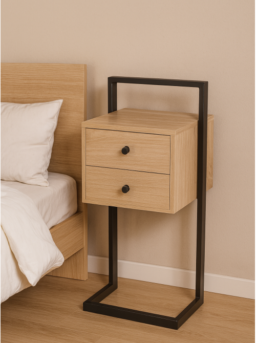 Столик приліжковий MSMLOFT — лаконічний лофт-акцент для спальні, студії чи сучасної вітальні. Основа виконана з металевого каркаса із профільної труби 20×20 мм, що забезпечує жорсткість конструкції і стабільність при щоденному використанні. Стільниця виготовлена з якісного ламінованого ДСП товщиною 16 мм у трендових декорах: дуб Родос, дуб Сонома, білий, чорний, горіх. Завдяки продуманим пропорціям столик не перевантажує простір і легко стає біля ліжка, дивана чи крісла. На верхній поверхні зручно розмістити лампу, книгу, чашку кави або декор, а нижній ярус можна використовувати як полицю для журналів, боксу чи кошика. Модель гармонійно поєднується з іншими лофт-меблями MSMLOFT – приліжковими тумбами, стелажами, ТВ-тумбами. Столик розрахований на експлуатацію як у домашніх, так і в комерційних інтер’єрах (апартаменти, готелі, офіси). Металевий каркас витримує інтенсивне навантаження, а поверхні з ДСП прості в догляді: достатньо протерти їх вологою серветкою. Оберіть потрібний відтінок і додайте кімнаті стильний та функціональний елемент у сучасному лофт-стилі.