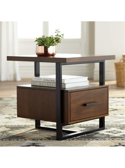 Тумба нічна метал/Горіх — 500×500×400 мм, MSMLOFT