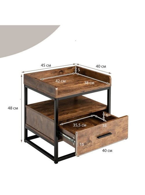 Тумбочка Gymax Side від виробника MSM — це стильна та функціональна приліжкова тумба у сучасному лофт-дизайні, створена для спальні, вітальні або компактних інтер’єрів. Конструкція поєднує міцний металевий каркас 20×20 мм із стільницею та полицями з ДСП 16 мм, що забезпечує довговічність, стійкість та мінімалістичний вигляд меблів. Модель має зручну шухляду для прихованого зберігання та два відкриті яруси, куди легко розмістити книги, декор, гаджети чи повсякденні речі. Завдяки універсальним відтінкам ДСП ви можете підібрати тумбу під будь-яку кімнату — від світлих скандинавських до темних індустріальних інтер’єрів. Компактні розміри 45×40×48 см дозволяють ставити тумбу навіть у невеликих приміщеннях, а стильний дизайн підкреслить сучасність вашого простору. Тумбочка Gymax Side — це поєднання практичності, надійності та фірмового стилю MSM, який цінують по всій Україні.