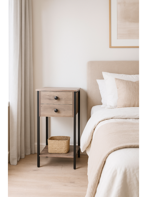 Висока тумбочка MSM Loft з 2 ящиками та полицею — це практичне рішення для сучасних інтер’єрів у стилі лофт, мінімалізм або модерн. Модель поєднує компактні габарити та продуману функціональність, тому чудово підходить як приліжкова тумба в спальню, тумбочка біля дивана у вітальні чи місткий органайзер у коридорі. Міцний металевий каркас з профільної труби 20×20 мм забезпечує надійну стійкість конструкції та довгий термін служби. Стільниця, полиця та фасади виконані з ДСП товщиною 16–18 мм у світлому або темному декорі, що легко поєднується з іншими меблями MSM Loft та стандартними корпусними меблями. Два зручні ящики дозволяють заховати дрібні речі, документи, аксесуари, а відкрита полиця підійде для книг, декору чи кошика з текстилем. Завдяки висоті 68 см, ширині 35 см та глибині 28 см тумбочка не займає багато місця, але створює додатковий корисний простір для зберігання. Такий формат особливо актуальний для невеликих квартир, орендованого житла, домашнього кабінету чи офісу у стилі лофт. Виробник MSM Loft (МСМ) — український бренд металевих дверей та лофт-меблів, який виготовляє каркаси на власному виробництві та контролює якість кожного виробу. Ви отримуєте заводську збірку, надійні матеріали та стильний дизайн з акцентом на прості геометричні форми. Тумбочка з 2 ящиками та полицею MSM Loft стане універсальним елементом інтер’єру: її можна використовувати як приліжкову тумбу, компактний комод, тумбочку під квіти або допоміжний столик біля дивана. Замовляйте онлайн на M-S-M.ua з доставкою по всій Україні.
