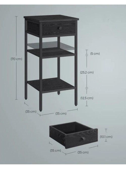Стильна тумбочка у лофт-дизайні від виробника MSM — це ідеальне рішення для спальні, вітальні чи домашнього кабінету. Модель оснащена зручним висувним ящиком та двома відкритими полицями, що дозволяє компактно організувати простір і тримати під рукою найнеобхідніші речі. Металевий каркас з профільної труби 20×20 мм забезпечує надійну стійкість та довговічність конструкції, а полички й фасад виконані з ДСП 16 мм у сучасній фактурі, яка гармонійно поєднується з мінімалістичною геометрією виробу. Завдяки розмірам 70×35×35 см тумбочка легко розміщується навіть у невеликих кімнатах, не перевантажуючи інтер’єр. Модель доступна у світлому та темному кольорах, що дозволяє підібрати варіант під будь-який стиль — від лофт до модерну. Тумбочка MSM поєднує функціональність, сучасний вигляд і якісні матеріали, створюючи комфорт у вашому домі щодня.