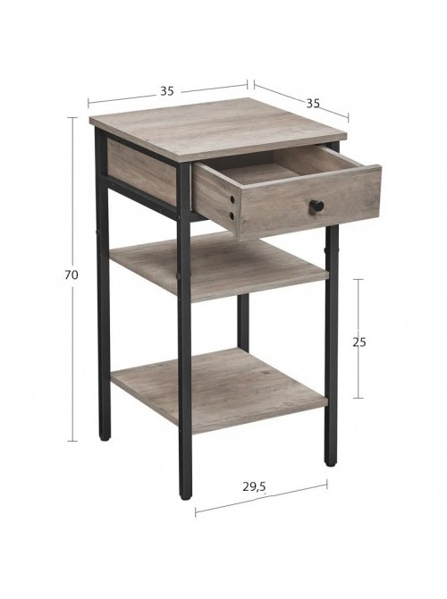 Стильна тумбочка у лофт-дизайні від виробника MSM — це ідеальне рішення для спальні, вітальні чи домашнього кабінету. Модель оснащена зручним висувним ящиком та двома відкритими полицями, що дозволяє компактно організувати простір і тримати під рукою найнеобхідніші речі. Металевий каркас з профільної труби 20×20 мм забезпечує надійну стійкість та довговічність конструкції, а полички й фасад виконані з ДСП 16  мм у сучасній фактурі, яка гармонійно поєднується з мінімалістичною геометрією виробу. Завдяки розмірам 70×35×35 см тумбочка легко розміщується навіть у невеликих кімнатах, не перевантажуючи інтер’єр. Модель доступна у світлому та темному кольорах, що дозволяє підібрати варіант під будь-який стиль — від лофт до модерну. Тумбочка MSM поєднує функціональність, сучасний вигляд і якісні матеріали, створюючи комфорт у вашому домі щодня.