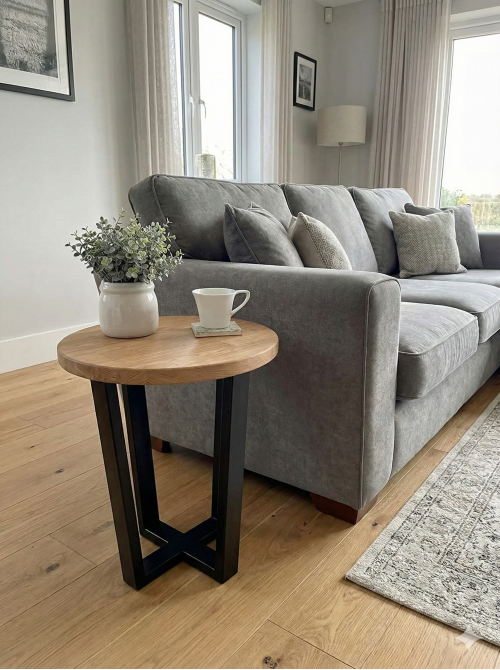 Лаконічний та витончений круглий столик — це універсальне рішення для сучасного інтер'єру. Поєднання чорного металу та теплої фактури дерева надає йому стильного вигляду, а компактні розміри дозволяють використовувати його навіть у невеликих кімнатах. Чорна рама мм з порошковим покриттям створює ефектний контраст зі стільницею, підкреслюючи індустріальний стиль лофт. Кругла форма стільниці без гострих кутів робить цей столик безпечним для приміщень, де є діти, та зручним для проходу у вузьких зонах. Каркас виготовлений з міцної металевої труби перерізом 20х40 мм, що забезпечує стійкість конструкції, не обтяжуючи її візуально. Порошкове фарбування захищає метал від корозії та подряпин. Простий дизайн дозволяє легко інтегрувати столик у будь-який декор — від класичного лофту до скандинавського стилю чи модерну.
