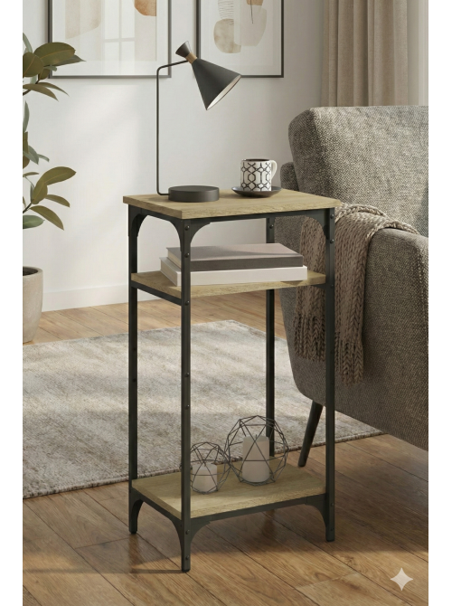 Приставний столик Holzwerkstoff від українського виробника ТМ MSM — це втілення сучасного комфорту. Ця модель у популярному відтінку Дуб Сонома додає інтер’єру свіжості, візуально розширює простір та ідеально доповнює дизайн у стилі Loft чи мінімалізм. Цей компактний меблевий елемент створений для тих, хто цінує ергономіку. Він легко перетворюється на робоче місце для ноутбука біля дивана, кавовий столик або підставку для декору. Каркас виготовлено з металевої профільної труби 20×20 мм. Це забезпечує стійкість конструкції — столик не хитається і витримує активне щоденне використання. Метал пофарбовано методом порошкового напилення. Це гарантує захист від корозії, вологи та випадкових подряпин, зберігаючи ідеальний вигляд на роки.Виконана з ламінованої ДСП у кольорі Дуб Сонома. Ця текстура світлого дерева є універсальною, практичною (на ній менше видно пил) та приємною на дотик. Поверхні стійкі до вологи та побутової хімії, їх легко чистити.