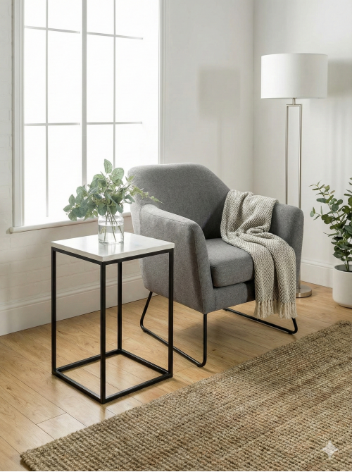 Приставний столик Vitan — це ідеальне поєднання естетики індустріального стилю та практичності. Ця компактна модель розроблена спеціально для тих, хто цінує ергономіку простору. Завдяки продуманій формі, столик зручно присувається впритул до дивана, крісла або ліжка, створюючи комфортну зону для роботи з ноутбуком, читання або ранкової кави. Основою служить міцний металевий каркас із профільної труби 20×20 мм. Це гарантує стійкість столика — він не хитається і витримує значні навантаження, залишаючись при цьому візуально легким. Метал пофарбовано методом порошкового напилення. Таке покриття не лише надає виробу стильного матового вигляду, але й надійно захищає від корозії, іржі та дрібних механічних пошкоджень. Виготовлена з якісного ламінованого ДСП 16 мм. Поверхня стійка до вологи, легко миється та доступна у світлому або темному виконанні, що дозволяє підібрати меблі під будь-яку кольорову гаму кімнати. Ніжки столика обладнані м'якими флісовими накладками. Ви можете вільно пересувати столик паркетом, ламінатом чи плиткою, не боячись залишити подряпини. Приставний столик Vitan — це універсальне рішення: використовуйте його як підставку для ноутбука, приліжкову тумбу або журнальний столик. Максимум комфорту на мінімумі місця.