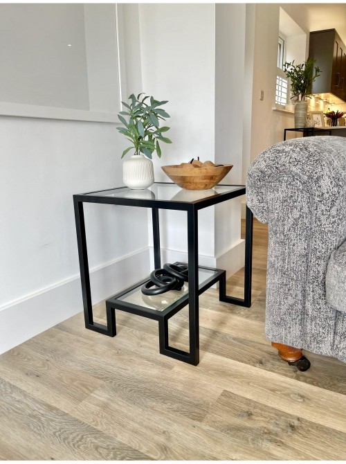 Журнальний столик Hudson Glass від виробника MSM — стильне рішення для тих, хто цінує поєднання прозорого скла та чорного металу. Розміри стола — 52×52×55 см, що робить його компактним, але достатньо просторим для кави, декору чи журналів на двох рівнях. Обидві полиці виготовлені з прозорого скла товщиною 6 мм, що додає виробу елегантності й візуальної легкості. Каркас виконаний з металевої труби 20×20 мм з чорний покриттям, яке надає теплого відтінку та підходить для різних інтер’єрів — від модерну до арт-лофту. Дві рівні полиці дають змогу зручно організувати простір: верхня поверхня чудово підходить для чашки кави чи декоративних предметів, нижня — для зберігання книг чи аксесуарів. Модель ідеальна для вітальні, куточка відпочинку або як стильний акцент у зоні прийому гостей. Поверхня скла легко очищується, металевий каркас міцний і стійкий до щоденного використання.
