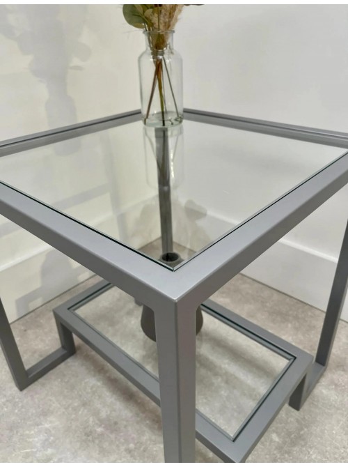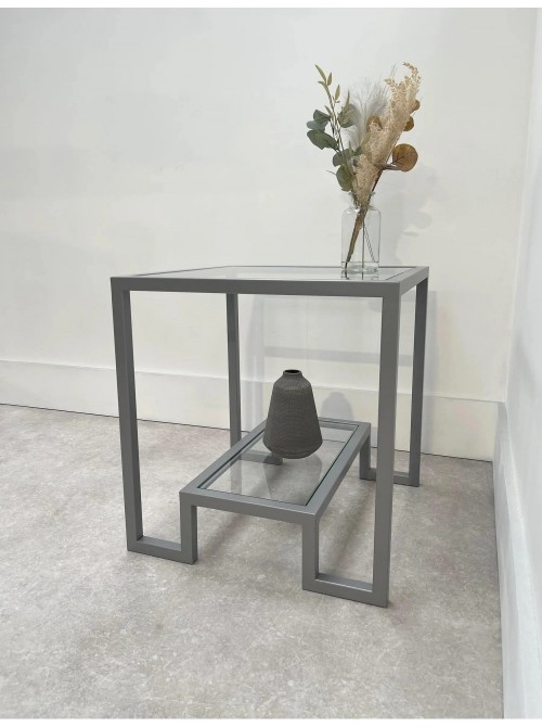 Журнальний столик Hudson Glass від виробника MSM — стильне рішення для тих, хто цінує поєднання прозорого скла та сірого металу. Розміри стола — 52×52×55 см, що робить його компактним, але достатньо просторим для кави, декору чи журналів на двох рівнях. Обидві полиці виготовлені з прозорого скла товщиною 6 мм, що додає виробу елегантності й візуальної легкості. Каркас виконаний з металевої труби 20×20 мм з сірим покриттям, яке надає теплого відтінку та підходить для різних інтер’єрів — від модерну до арт-лофту. Дві рівні полиці дають змогу зручно організувати простір: верхня поверхня чудово підходить для чашки кави чи декоративних предметів, нижня — для зберігання книг чи аксесуарів. Модель ідеальна для вітальні, куточка відпочинку або як стильний акцент у зоні прийому гостей. Поверхня скла легко очищується, металевий каркас міцний і стійкий до щоденного використання.
