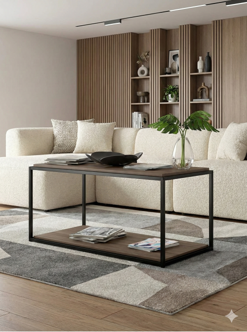 Журнальний столик Lexi із полицею — стильний та функціональний варіант для тих, хто цінує якість і естетику в стилі лофт. Каркас зроблений із труби 20×20 мм, з порошковим фарбуванням чорного кольору — міцний та стійкий до подряпин і корозії. Стільниця та нижня полиця виготовлені з ламінованого ДСП товщиною 16 мм — матеріал стійкий до вологи та легко очищується. Полиця знизу дозволяє зручно зберігати журнали, пульти чи дрібні речі, не захаращуючи верхню поверхню. Габарити моделі: ширина 1000 мм × глибина 480 мм × висота 450 мм, вага приблизно 15 кг. Цей столик ідеально пасує до середніх і просторих кімнат, коли потрібен стильний і корисний меблевий елемент, що поєднує дизайн і зручність. Столик Lexi ідеально впишеться в інтер'єри у стилі лофт, індастріал або сучасний мінімалізм. Замовляйте якісні меблі від MSM Loft з доставкою по Україні.