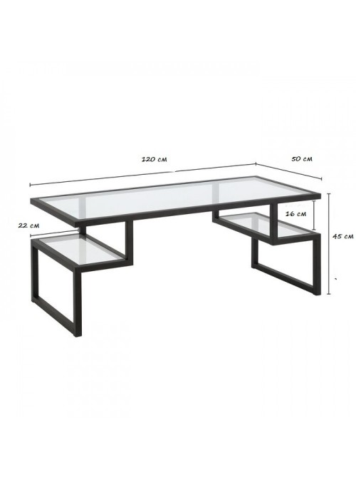 Столик Тab-172 створений, щоб бути центром уваги, залишаючись при цьому візуально легким. Його конструкція ідеально підходить для приміщень середнього та великого розміру, де важливо зберегти відчуття простору. Стільниця виготовлена з прозорого скла товщиною 6 мм. Важлива деталь — поліровані краї, що не тільки надає виробу завершеного естетичного вигляду, але й гарантує безпеку при дотику. Наявність нижніх полиць дозволяє розвантажити скляну поверхню. Журнали, пульти, гаджети чи елементи декору зручно розмістяться знизу, залишаючи верх ідеально чистим. Основа з металевої труби 20×20 мм забезпечує стабільність столу. Чорне фарбування робить його стійким до стирання та легким у догляді. При солідних габаритах вага столу складає близько 15 кг, що дозволяє без зайвих зусиль переставити його під час прибирання чи перепланування.