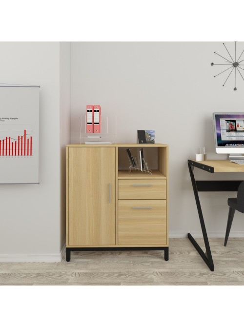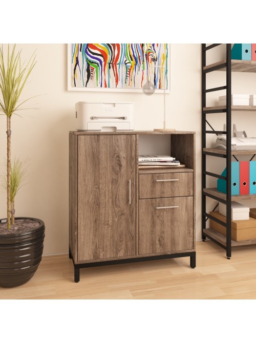 L-800 combi — функціональна тумба у лофт-естетиці для офісу, студії чи домашнього кабінету. Форм-фактор 90×80×40 см забезпечує місткість при акуратній глибині, а конфігурація “2 шухляди + однодверна секція” дозволяє розвести документи, аксесуари та обладнання по зонах. Телескопічні направляючі працюють плавно і витримують щоденне навантаження, ЛДСП 16 мм у чорний , білий, дуб сонома, дуб родос , горіх відтінку гармоніює з сучасними інтер’єрами, а сталевий каркас 20×40 мм (чорний) додає жорсткості та виразного лофт-характеру. На ніжках — зручно підтримувати чистоту під меблем. Вага ~35 кг гарантує стабільність.