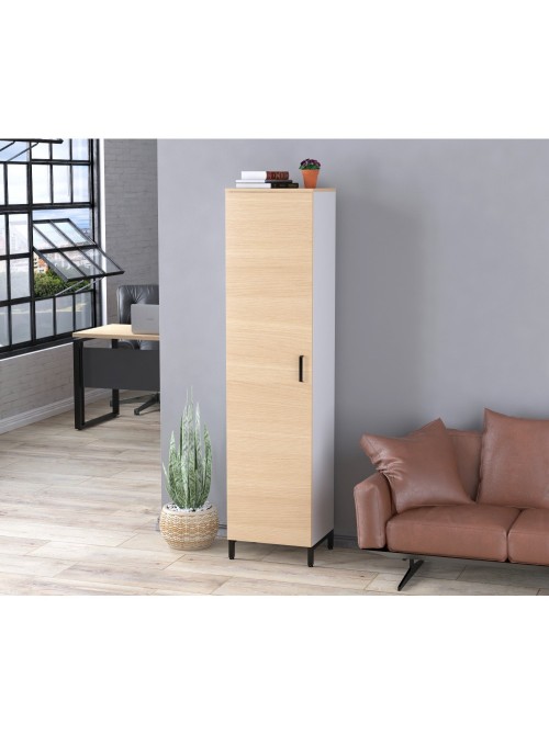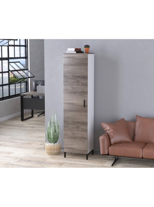 LT-450-1900 — вузька, але містка офісна шафа у лофт-естетиці для кабінету, студії чи ресепшена. Форм-фактор 45×190×42 см економить площу проходів і поміщається в нішах, зберігаючи корисний об’єм для документів, витратних матеріалів та оргтехніки. Корпус і фасади з ДСП 16 мм витримують щоденне навантаження. Регульовані металеві опори допомагають вирівняти меблі на «хвилястій» підлозі. Декори чорний , білий, дуб сонома, дуб родос , горіх легко поєднати з сучасними інтер’єрами.