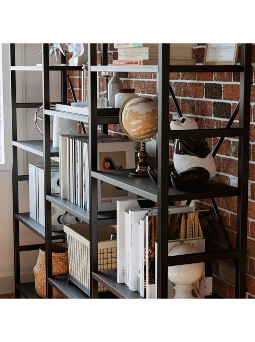 Даний Loft стелаж №4 — це компактне та стильне рішення для організації простору у вашому офісі або кабінеті. Високий, але вузький, він не займає багато місця, але вміщує чимало. Поєднання чорного металевого каркасу 20х40 мм та міцної ламінованої ДСП 16 мм створює стиль industrial, а доступність двох кольорових варіантів дозволяє впевнено інтегрувати його в будь-який декор. Товар присутній в наявності та готовий до доставки по Україні.
