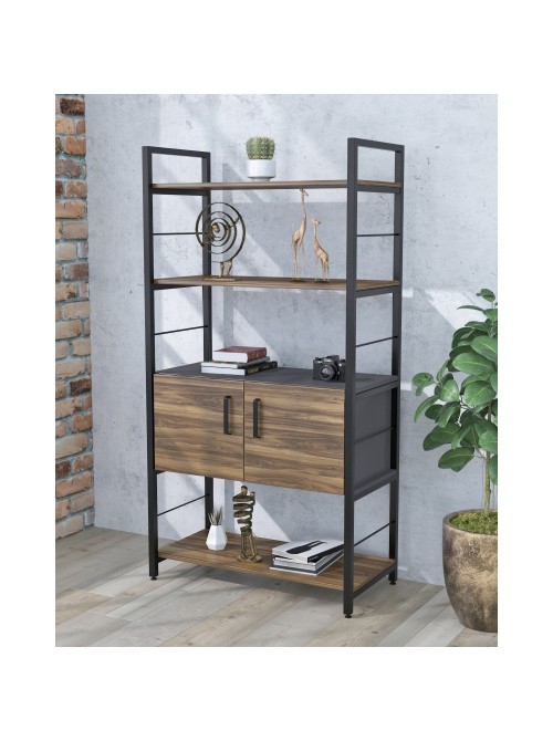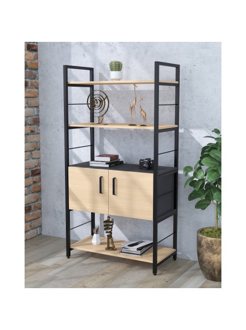 Стелаж L-155 з дверцятами від бренду MSMLOFT — це стильне та практичне рішення для сучасних інтер’єрів у стилі Loft. Модель поєднує міцний металевий каркас 20х40 мм із полицями з ДСП 16 мм, що гарантує стабільність і довговічність, а наявність дверцят додає зручності, дозволяючи приховати речі від сторонніх очей. Завдяки поєднанню відкритих і закритих секцій, стелаж стає багатофункціональним: відкриті полиці ідеальні для книг чи декору, а за дверцятами можна зберігати документи, особисті речі чи офісні аксесуари. Такий формат дозволяє підтримувати порядок і водночас робити інтер’єр більш виразним. Дизайн у стилі Loft підкреслюється поєднанням металу та деревини, чіткими лініями та мінімалістичною формою. Модель чудово впишеться у вітальню, кабінет, офіс чи коворкінг, додаючи простору характеру і функціональності.