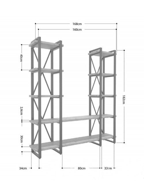 Стелаж Айсберг Лофт 160×182 см — чорний/графіт