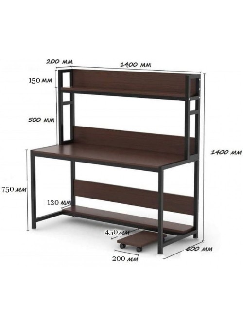 MSMLOFT — це надійний комп’ютерний стіл із продуманою організацією робочої зони. Дві додаткові полиці допомагають тримати під рукою книги, документи та периферію, а підставка на коліщатках для системного блоку спрощує доступ і прибирання. Основа зі сталі з профільної труби 20×20 мм гарантує жорсткість і стабільність, на опорах є флісові підкладки для захисту підлоги. Стільниці виконані з ламінованого ДСП 16 мм у теплому декорі «горіх », каркас — чорний із порошковим покриттям, стійким до подряпин і корозії. Габарити: висота 1400/750 мм, ширина 1400 мм, глибина 600 мм — достатньо для монітора/ноутбука та щоденної роботи; вага 28 кг підкреслює надійність . Доставка по Україні та сервіс виробника МСМ.