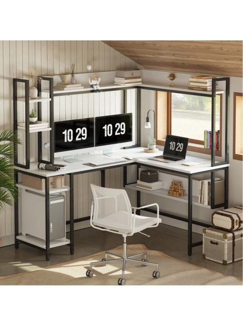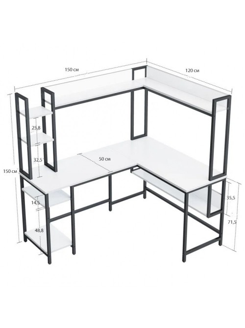 Множинні функції: поєднує два робочі столи, закриту поверхню, полиці для книг і підставку для системного блоку — все в одному компактному дизайні.