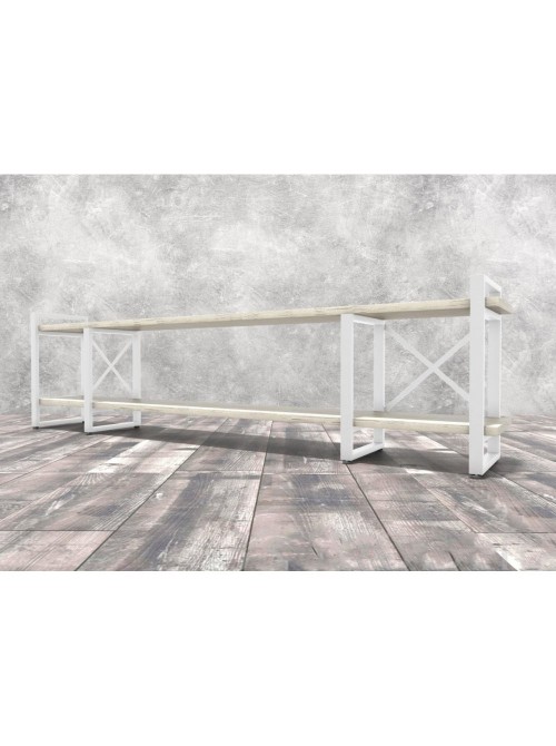 Тумба під телевізор Айсберг Лофт 240 від MSMLOFT — це стильне і практичне рішення для вітальні, кабінету або медіазони. Вона має вражаючі габарити 168×62×34 см, що дозволяє комфортно розмістити великий телевізор та додаткові елементи. Конструкція поєднує міцність і естетику: каркас з металевої труби 20×40 мм, пофарбованої порошковою фарбою, забезпечує надійність, а полички з ламінованого ДСП (16–мм) витримують вагу техніки і аксесуарів. Білий дизайн корпусу з білим фінішним каркасом додає легкості інтер’єру й гармонійного контрасту.