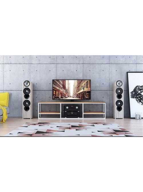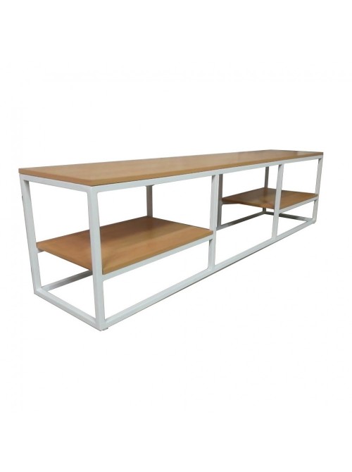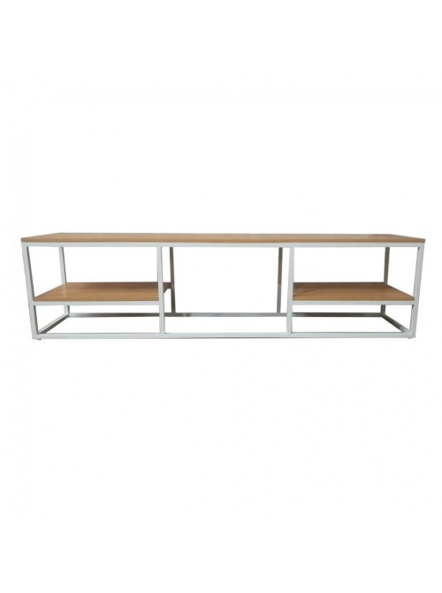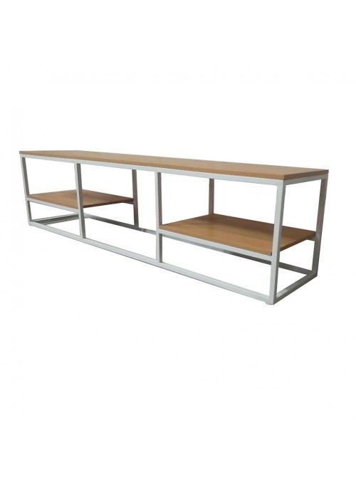 Каркас зроблений із металевого профілю 20*40 мм. Тумба має три полиці, основна для телевізора або інших побутових товарів, велику нішу та дві додаткові полиці. Завдяки металевому каркасу тумба дуже міцна та стійка. На ніжках каркаса є флісові підкладки, які зберігають підлогу від подряпин та пошкоджень. Стільниці виготовлені з ламінованого ДСП 16 мм. Матеріал полиць стійкий до вологи та легко миється. Каркас покритий якісною порошковою фарбою, яка стійка до подряпин та запобігає корозії.
