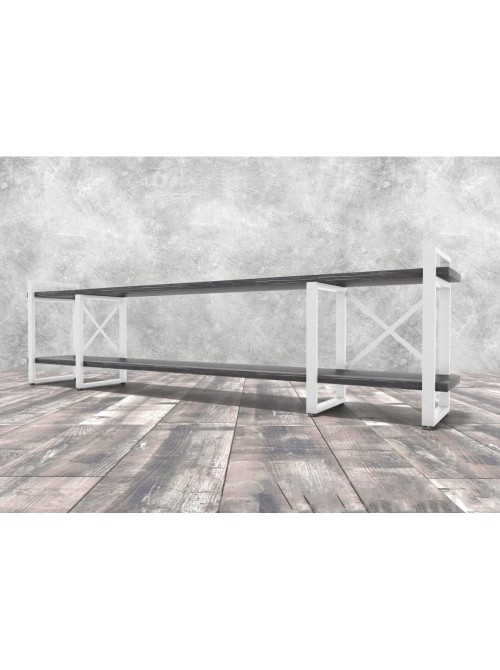 Тумба під телевізор Айсберг Лофт 240 від MSMLOFT — це стильне і практичне рішення для вітальні, кабінету або медіазони. Вона має вражаючі габарити 168×62×34 см, що дозволяє комфортно розмістити великий телевізор та додаткові елементи. Конструкція поєднує міцність і естетику: каркас з металевої труби 20×40 мм, пофарбованої порошковою фарбою, забезпечує надійність, а полички з ламінованого ДСП (16–мм) витримують вагу техніки і аксесуарів. Білий дизайн корпусу з білим фінішним каркасом додає легкості інтер’єру й гармонійного контрасту.