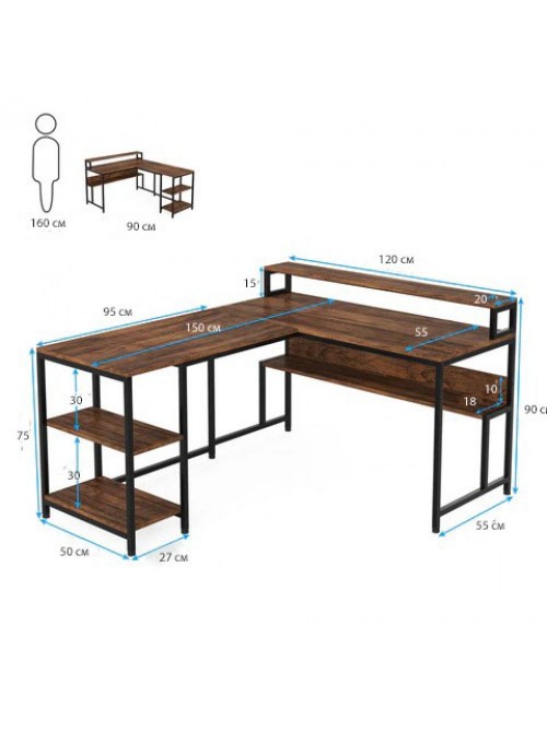 Компактний і практичний L‑подібний стіл від MSM — ідеальне рішення для економії простору в домашньому офісі чи коворкінгу. Його реверсивна конструкція дозволяє змінювати конфігурацію залежно від розташування кімнати: робоча частина може бути або зліва, або справа. Особлива підставка під монітор забезпечує ергономіку, знижуючи напругу в спині і шиї. На двоярусних бокових полицях та книжковій полиці під стільницею легко розмістити книги, документи, девайси або канцелярію — робоче місце залишається охайним і організованим. Стіл виготовлено з високоякісної ДСП товщиною 16–мм, поєднаної з міцним металевим каркасом із труби 20×20 мм — надійність у кожному елементі . Регульовані ніжки допомагають зберегти стійкість на нерівній підлозі та захистити поверхню . Розміри: висота – 90 см, ширина – 95 см, глибина – 120 см, доступні у світлому або темному кольорі. Ця модель органічно поєднує функціональність, ергономіку й стиль.