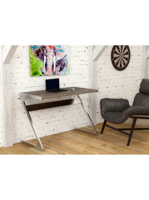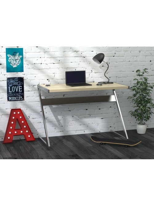 Письмовий стіл Z‑110 від MSMLOFT — це стильне та функціональне вирішення для невеликих просторів. Він оснащений стільницею з ДСП 16– мм та металевим каркасом із фігурними ніжками (20×40 мм), що забезпечують міцність і візуальну легкість . Габарити 110 × 58 × 75 см роблять його універсальним варіантом для дому або офісу. Доступні відтінки ДСП - чорний , білий, дуб сонома, дуб родос , горіх.