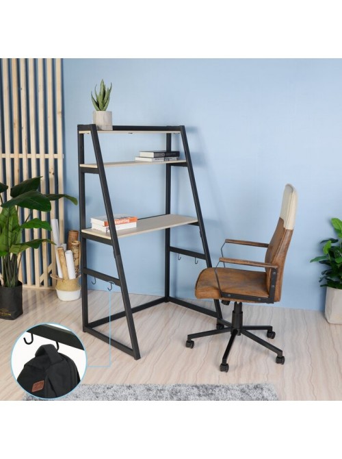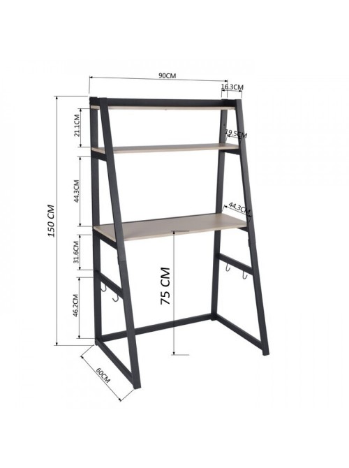 Письмовий стіл MSMLOFT із металевим каркасом — ефектне поєднання дизайну, надійності та практичності. Завдяки габаритам 90 × 60 × 150 см, він органічно вміщується в будь-якій кімнаті, водночас забезпечуючи комфортну зону для роботи або навчання. Конструкція виготовлена з розбірного металевого каркасу 20×20 мм, який гарантує динамічну міцність, а також дозволяє легко транспортувати або змінювати конфігурацію. Флісові підкладки на ніжках служать подвійній меті — утримують стійкість і захищають підлогове покриття. Ламінована ДСП стійка до води і подряпин, має естетичний вигляд і легко миється у побуті. Ключовим доповненням є додаткова полиця, яка надає зручність для організації речей. Контраст чорного каркасу і світлого дерев’яного блиску ДСП додає промислової естетики, що вдало вписується в сучасні інтер’єри.